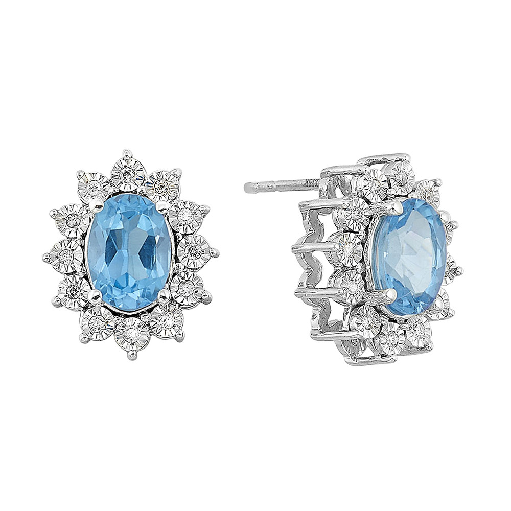Silver Diamond 1/10Ctw & Blue Topaz 2Ctw Earring