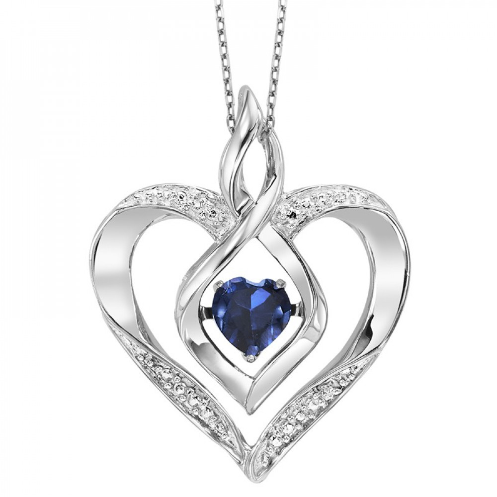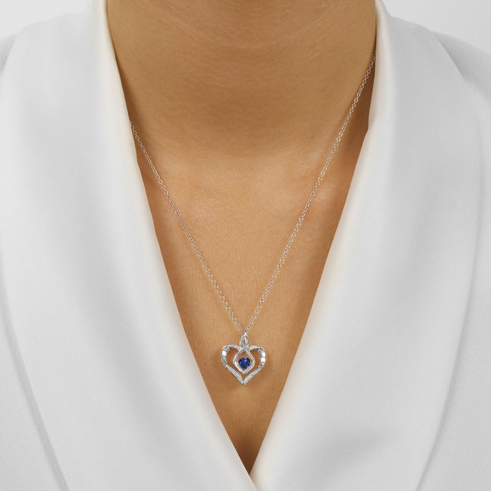 Silver Diamond 1/50Ctw & Created Sapphire 1/4Ctw Pendant