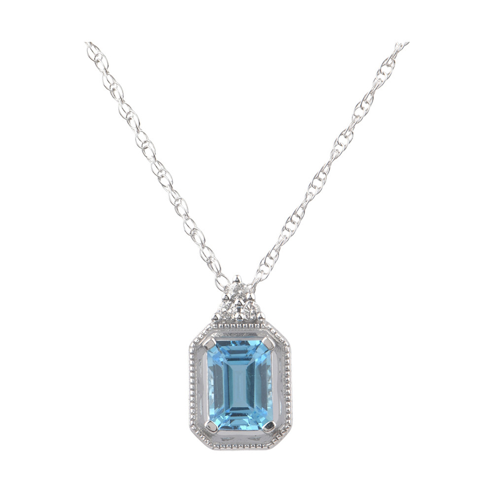 Silver White Diamond 1/50Ctw & Blue Topaz 1 1/5Ctw Pendant