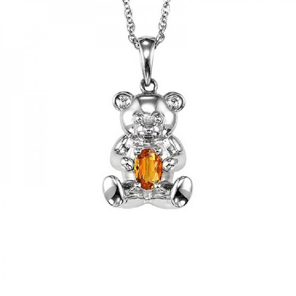 Teddy Bear Citrine Birthstone Pendant In Sterling Silver