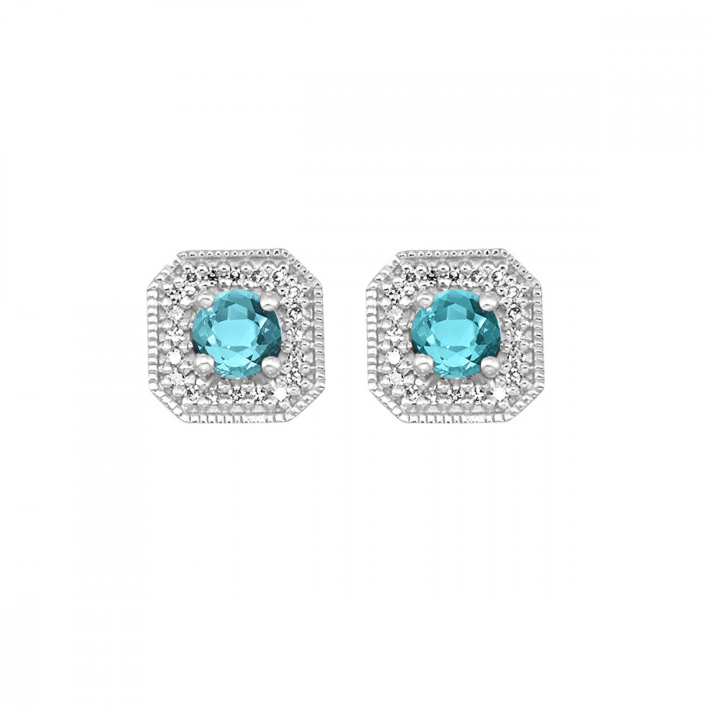10Kt White Gold Diamond 1/10Ctw & Aquamarine 1/2Ctw Earring