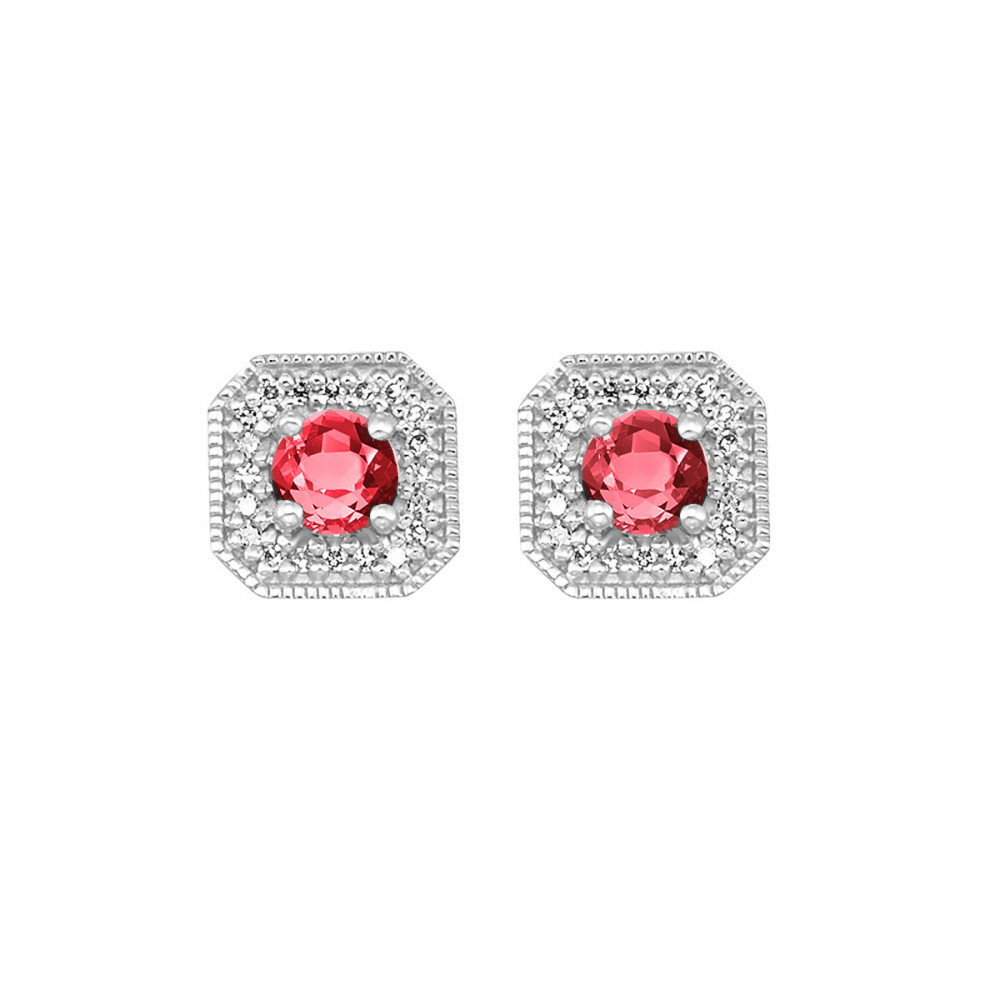 10Kt White Gold Diamond 1/10Ctw & Created Ruby 3/4Ctw Earring