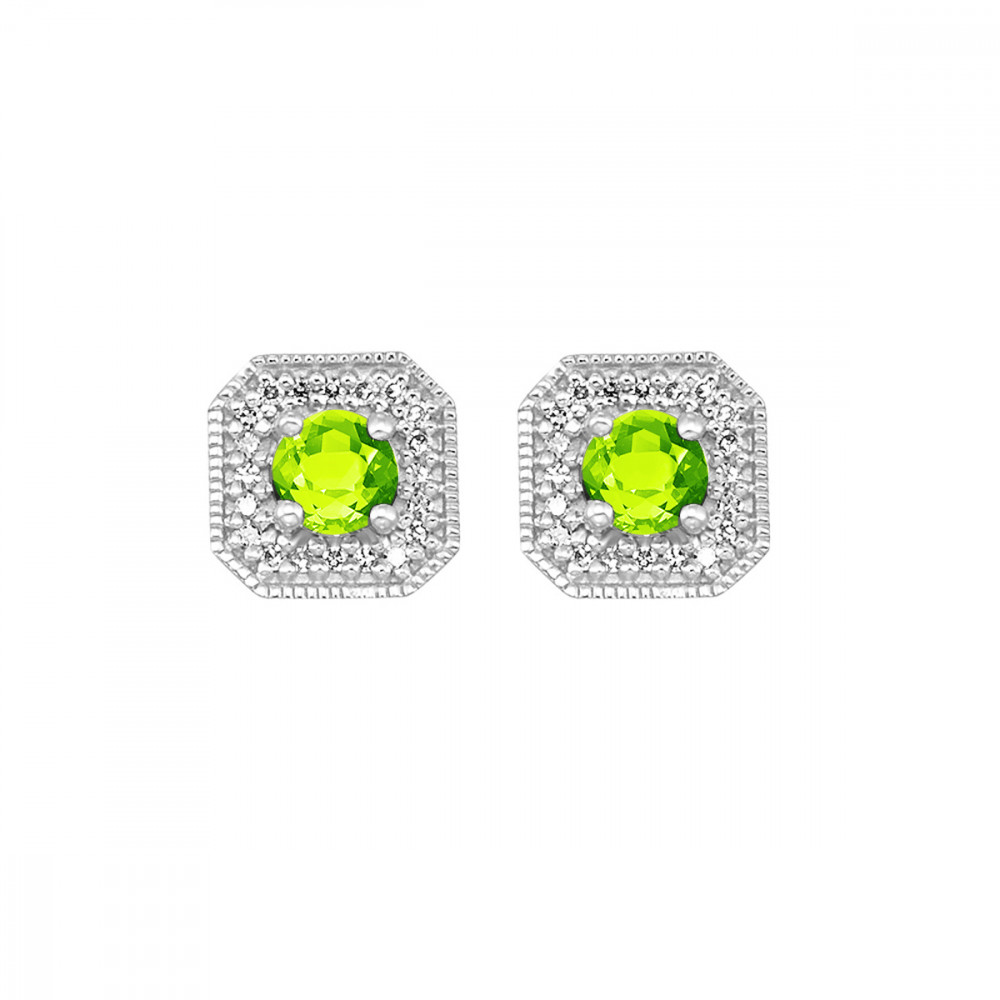 10Kt White Gold Diamond 1/10Ctw & Peridot 1/2Ctw Earring