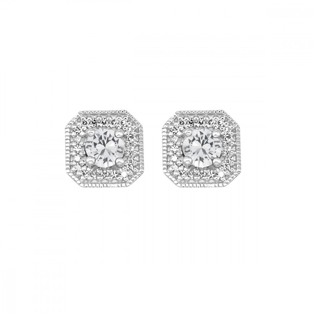 10Kt White Gold Diamond 1/10Ctw & White Topaz 3/4Ctw Earring