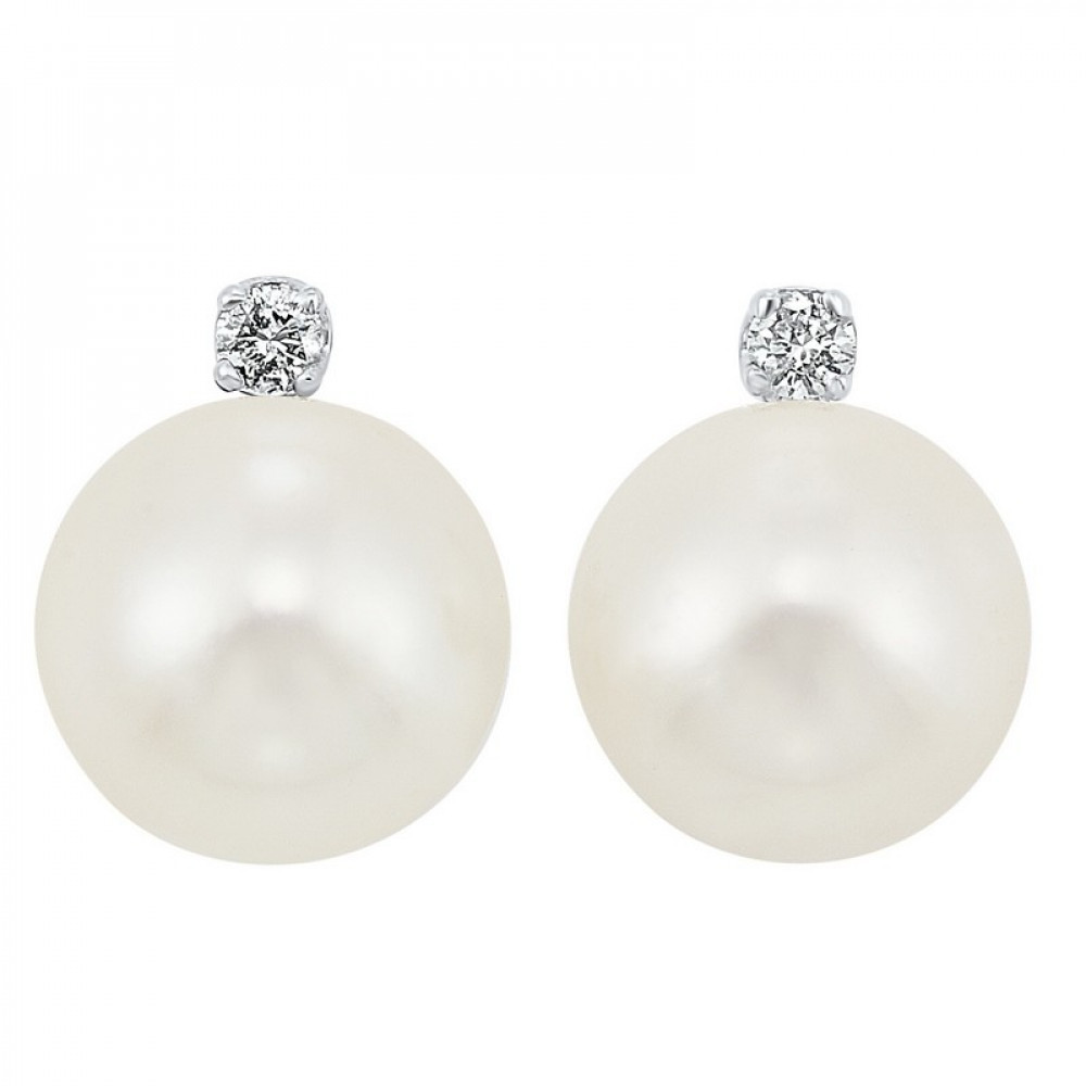 14Kt White Gold Diamond 1/20Ctw & Pearl Earring