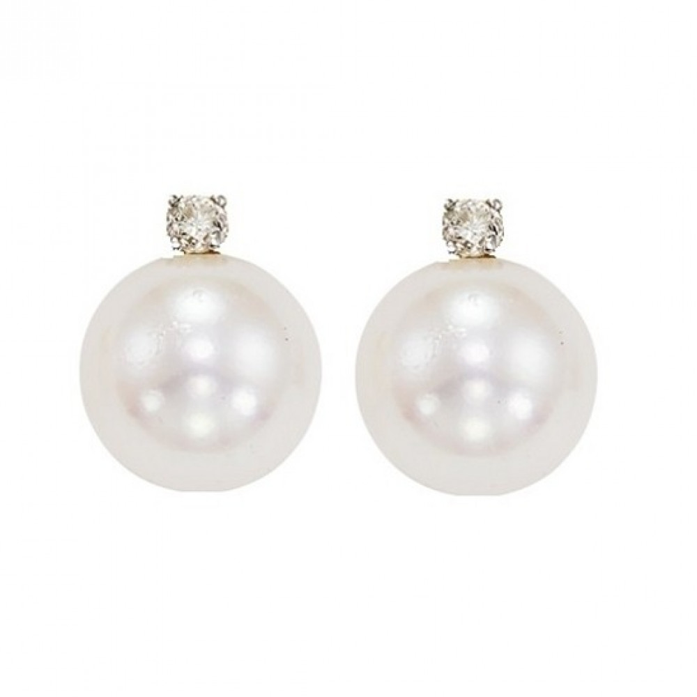 14Kt White Gold Diamond 1/20Ctw & Pearl Earring