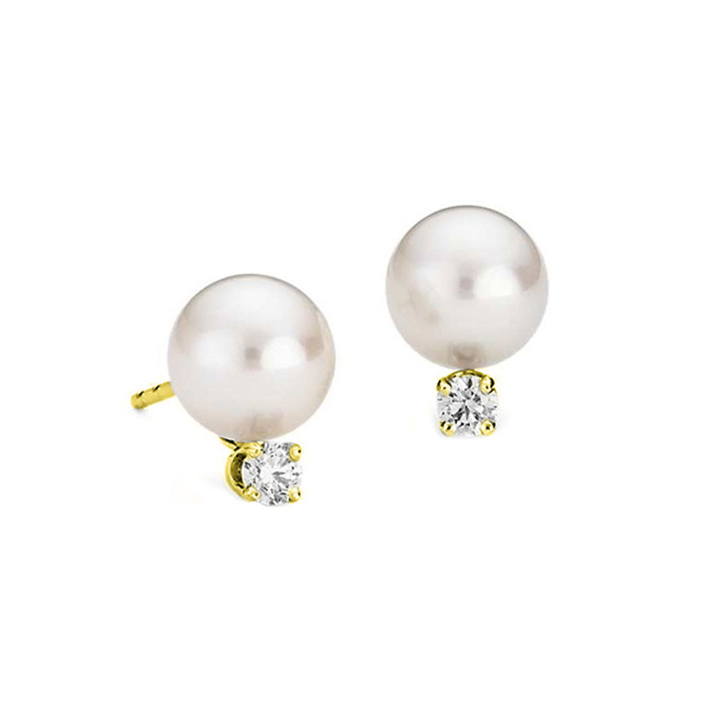 14Kt Yellow Gold Diamond 1/20Ctw & Pearl Earring