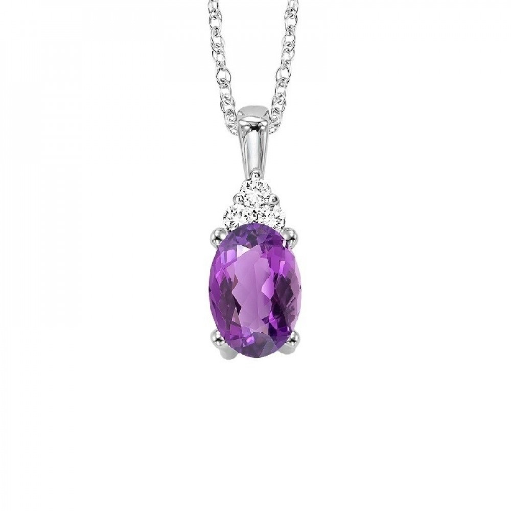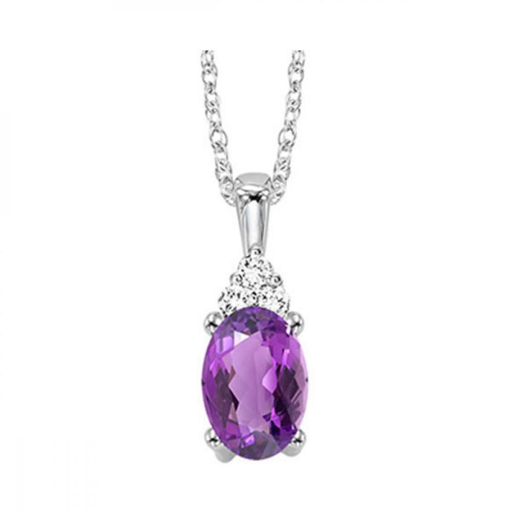 10Kt White Gold Diamond 1/50Ctw & Amethyst 3/8Ctw Pendant