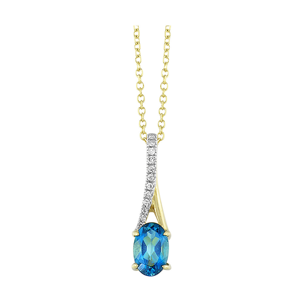 10Kt Yellow Gold Diamond 1/25Ctw & Blue Topaz 1/2Ctw Pendant