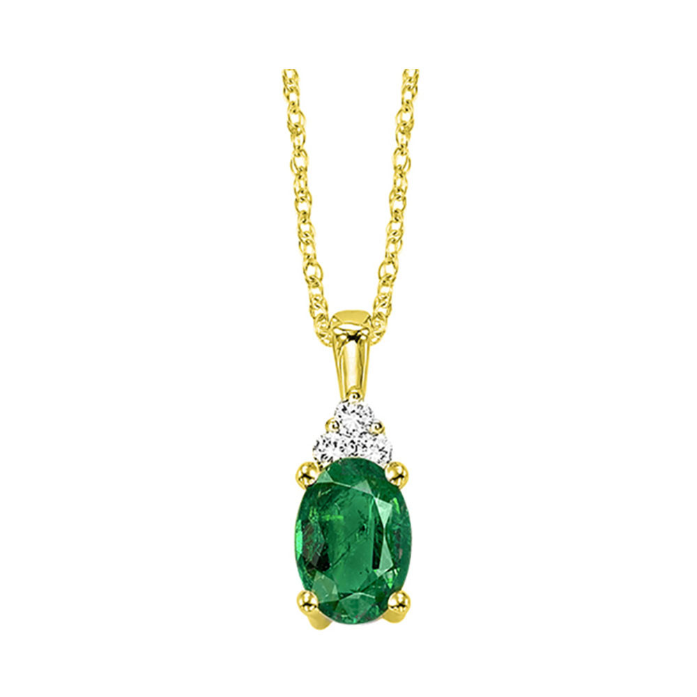 10Kt Yellow Gold Diamond 1/50Ctw & Emerald 1/2Ctw Pendant