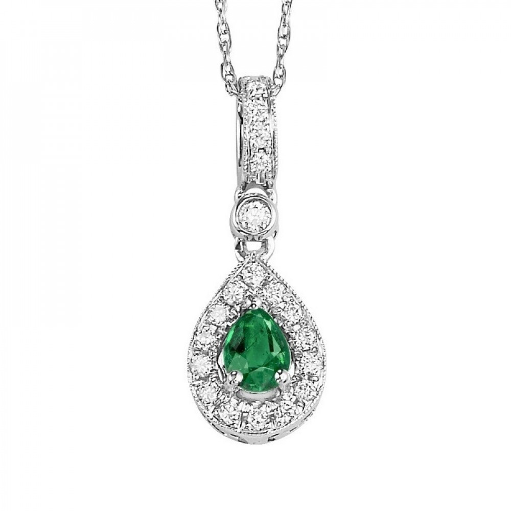 14Kt White Gold Diamond 1/10Ctw & Emerald 1/5Ctw Pendant