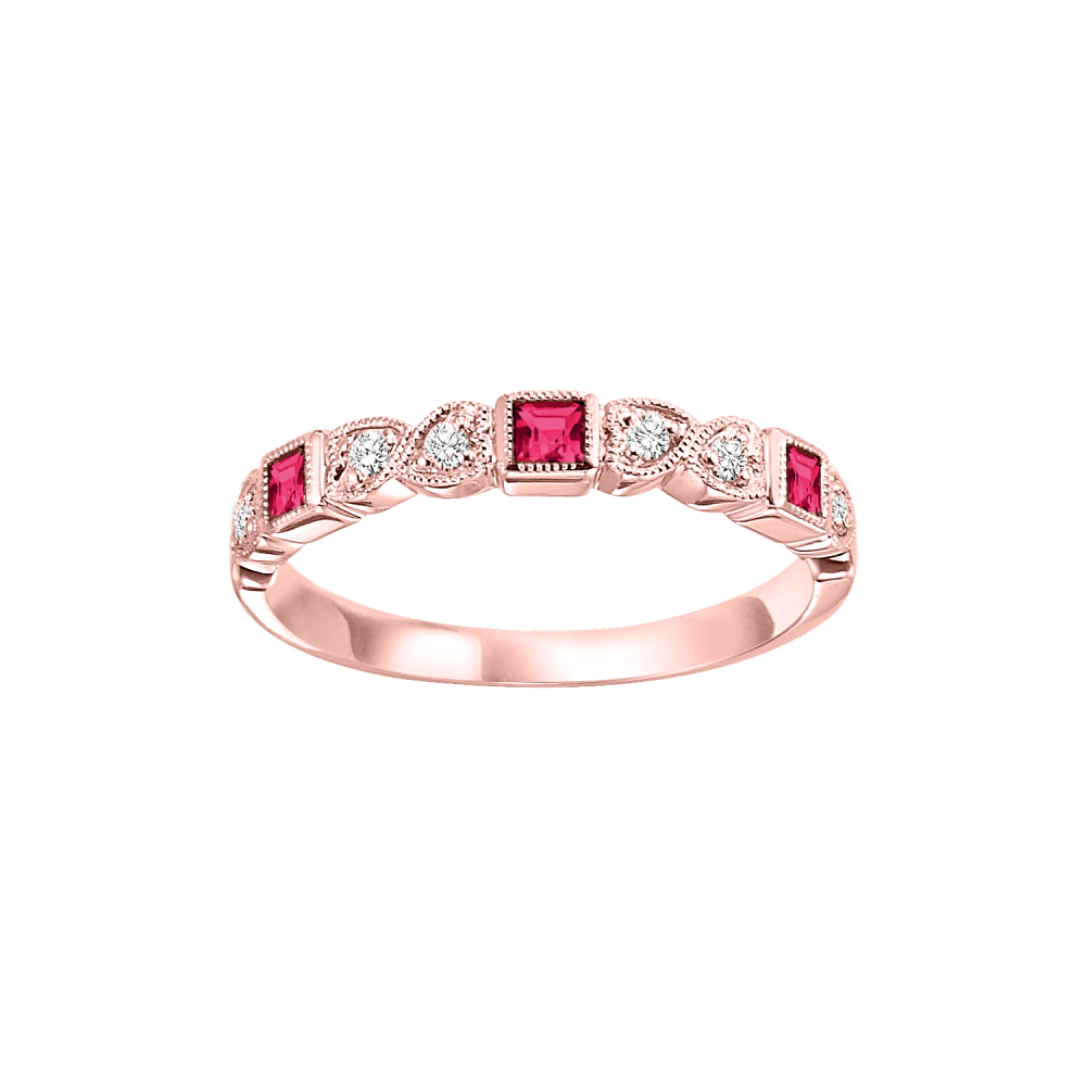 10Kt Rose Gold Diamond 1/12Ctw & Ruby 1/8Ctw Ring