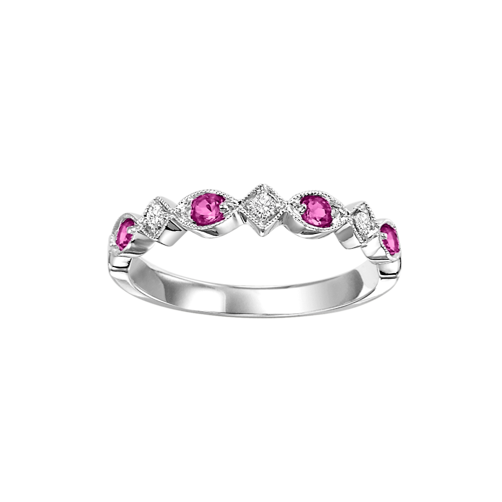 10Kt White Gold Diamond 1/20Ctw & Ruby 1/6Ctw Ring