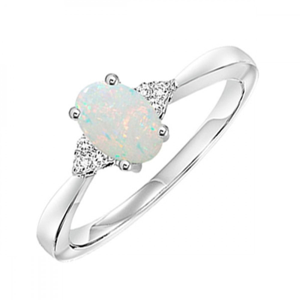 10Kt White Gold Diamond 1/25Ctw & Opal 1/2Ctw Ring