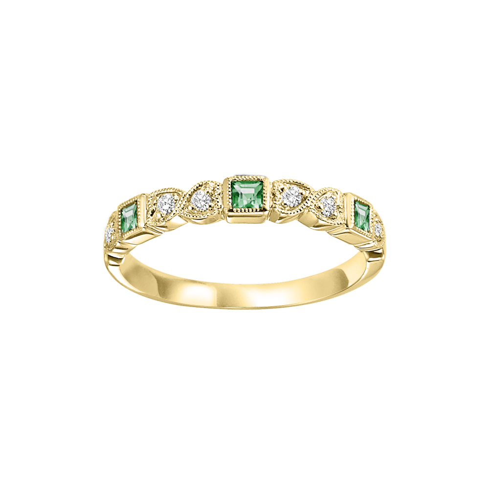 10Kt Yellow Gold Diamond 1/10Ctw & Emerald 1/6Ctw Ring