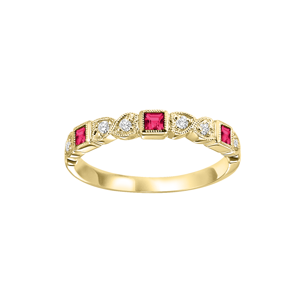 10Kt Yellow Gold Diamond 1/12Ctw & Ruby 1/8Ctw Ring