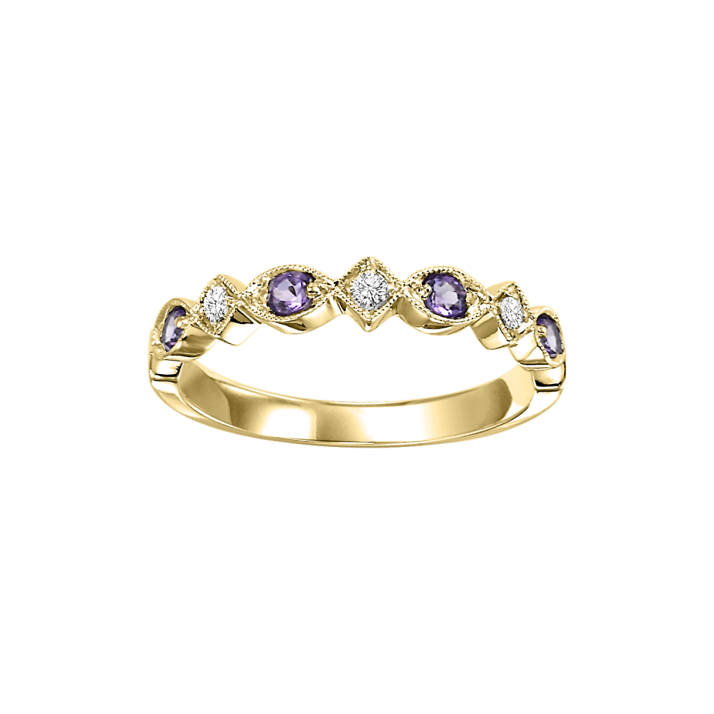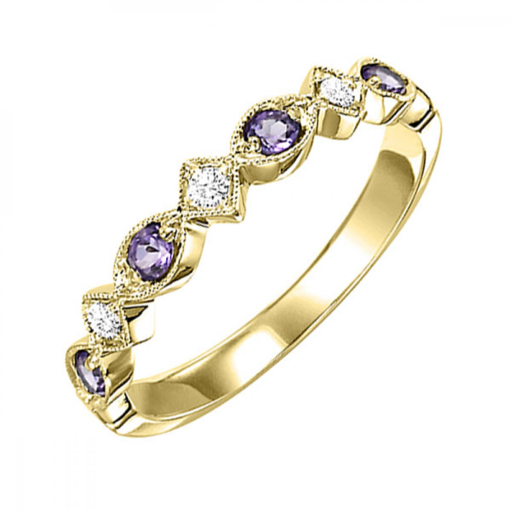 10Kt Yellow Gold Diamond 1/20Ctw & Amethyst 1/6Ctw Ring