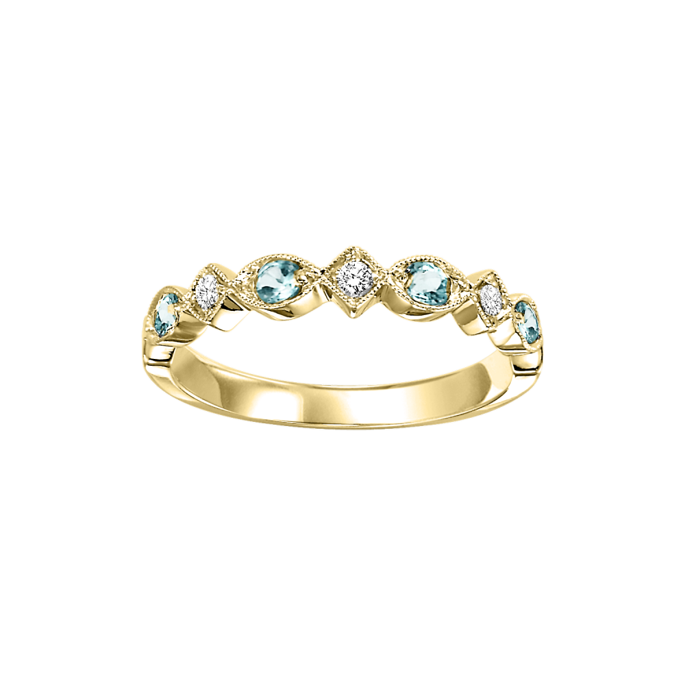 10Kt Yellow Gold Diamond 1/20Ctw & Blue Topaz 1/6Ctw Ring