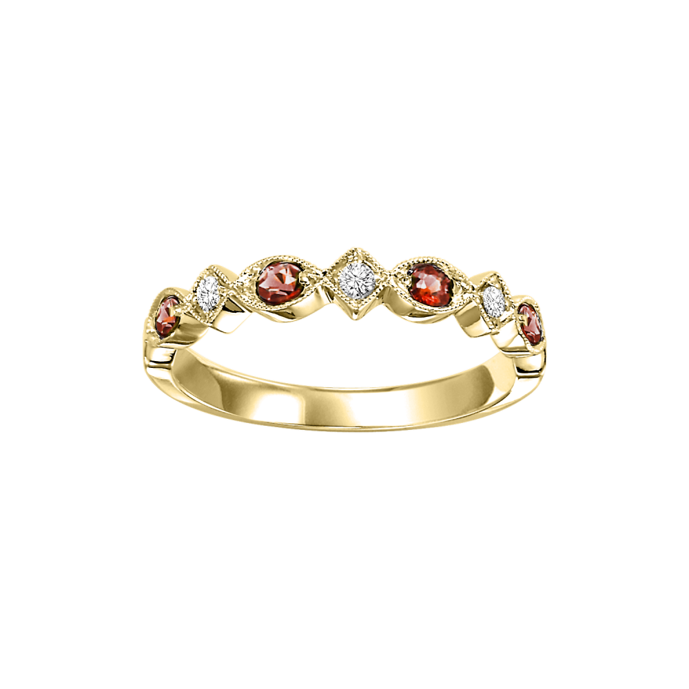 10Kt Yellow Gold Diamond 1/20Ctw & Garnet 1/6Ctw Ring