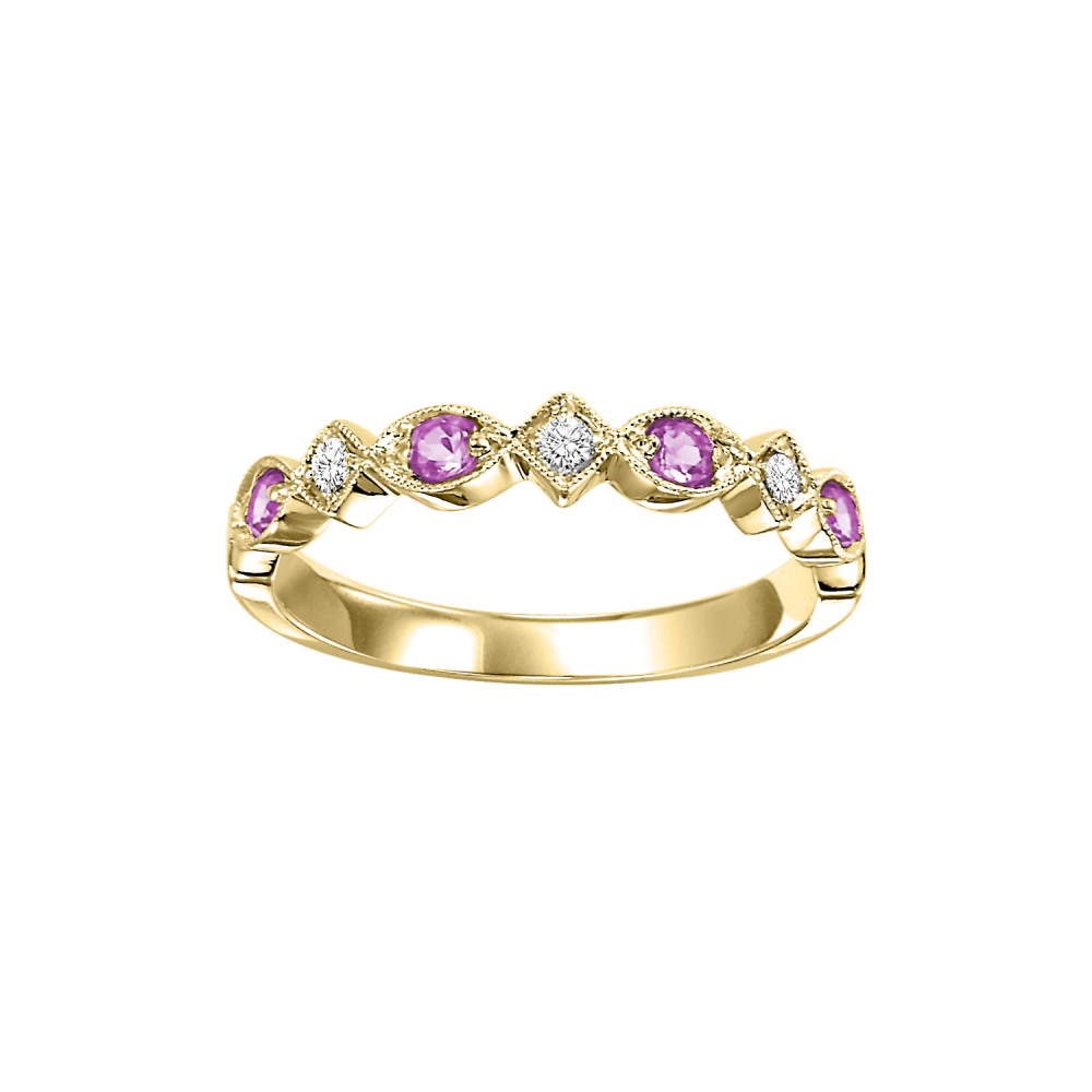 10Kt Yellow Gold Diamond 1/20Ctw & Pink Sapphire 1/6Ctw Ring