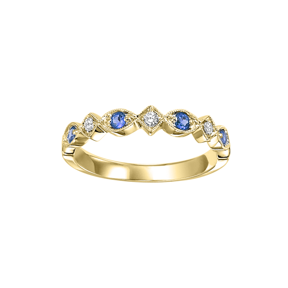 10Kt Yellow Gold Diamond 1/20Ctw & Sapphire 1/6Ctw Ring