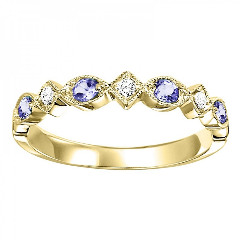10Kt Yellow Gold Diamond 1/20Ctw & Syn Alexandrite 1/6Ctw Ring