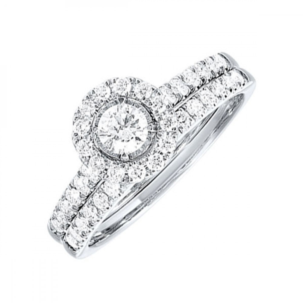 14Kt White 3/4Ctw With 1/5Ctw Round Center