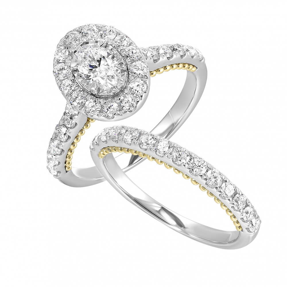 14Kt White Yellow 1Ctw With 1/4Ctw Oval Center